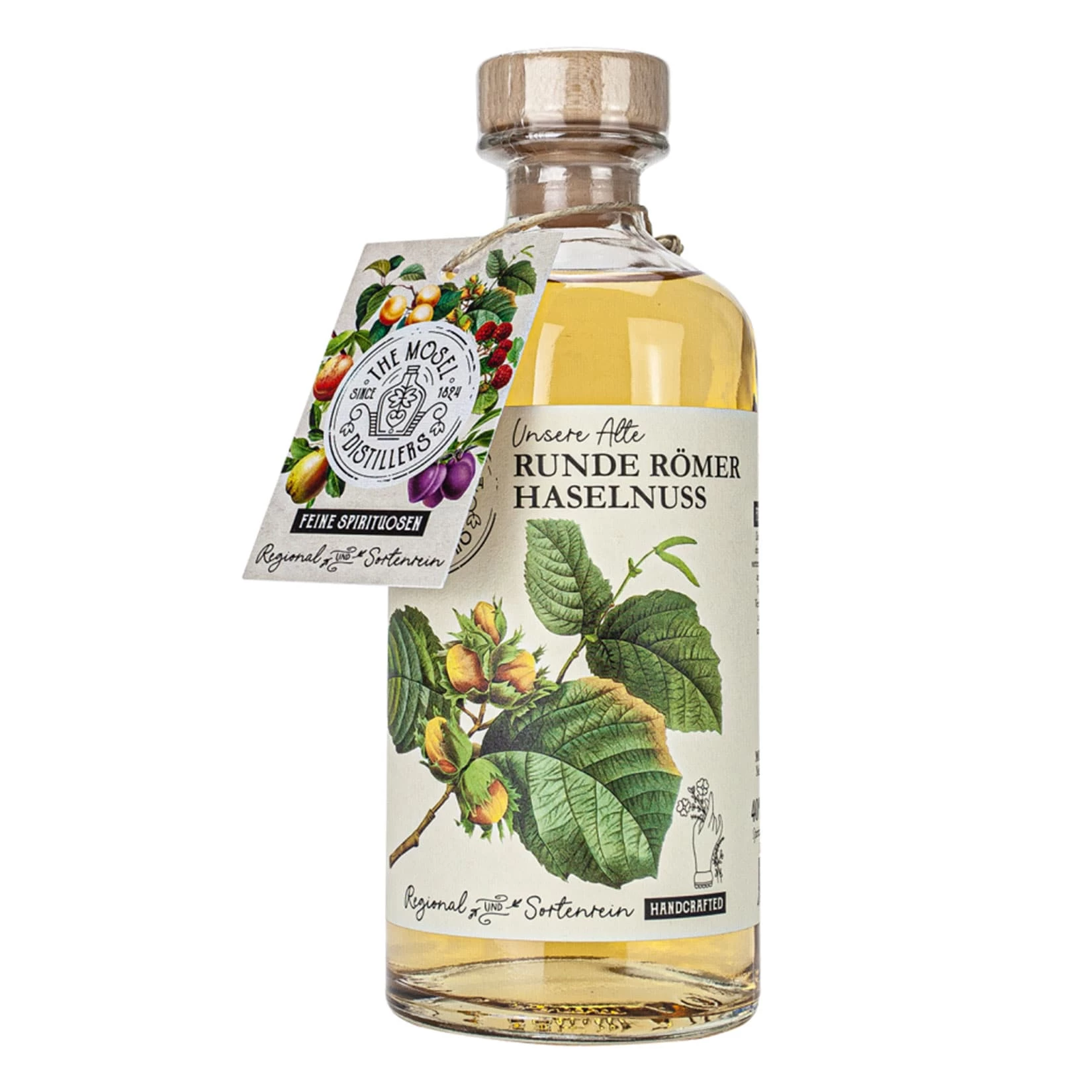 Die Alte Haselnuss wird aus sorgfältig ausgewählten, leicht gerösteten Haselnüssen der Sorte „Runde Römern“ hergestellt. Ihr Markenzeichen ist das kräftige Nuss-Nougat-Aroma, das sich im Mund weich und vielschichtig zeigt, feine Röstaromen präsentiert und sich trotz seiner Intensität mild an den Gaumen schmiegt.